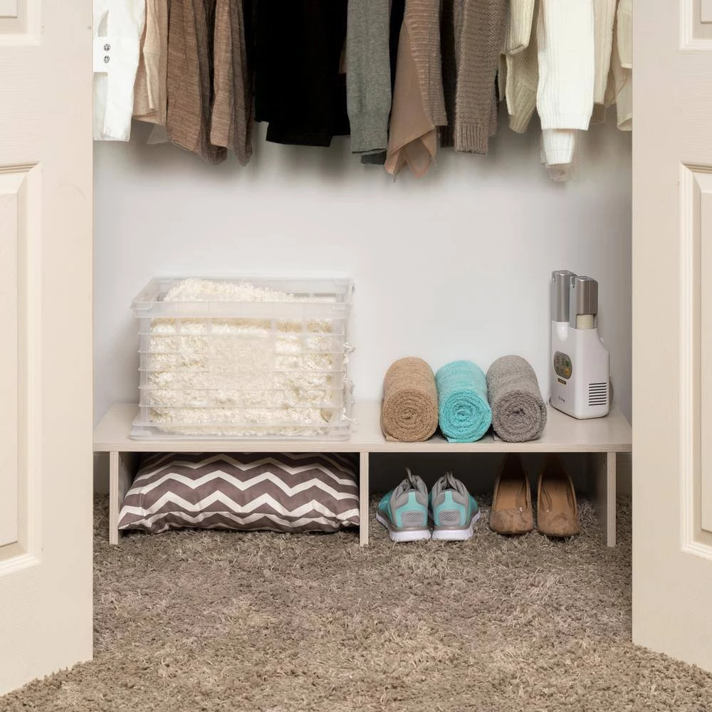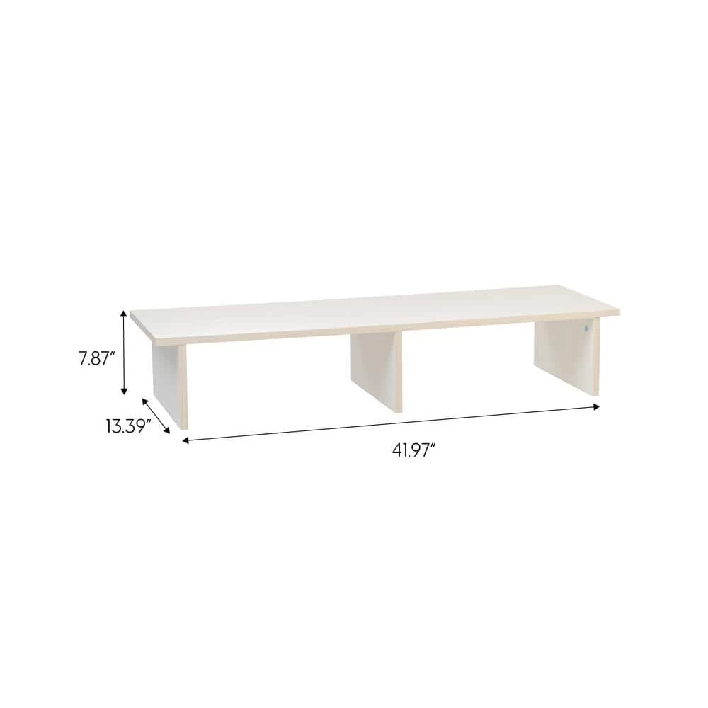 These IRIS large 1-tier organizer shelves help you create the perfect organizational system. Multi-purpose riser is sturdy and creates the ideal solution for use as a small TV stand, computer riser, bookshelf, or more. Whether used as a media organizer, shoe shelf, or laptop holder, the classic design offers functionality and style in 1 easy to assemble storage shelf. Large risers can hold up to 44 lbs. Available in multiple colors. Assembly required. Compliant with CARB Regulation 93120 – Phase 2.