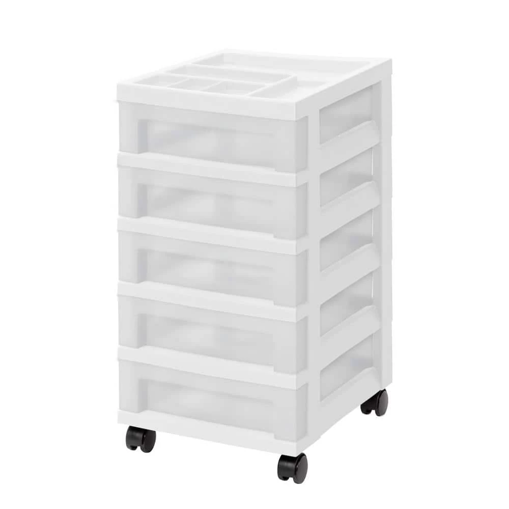 Is your desk overrun with sloppy stacks of paper. Too much clutter in your craft space. This mobile 5-drawer cart can help you get organized in no time. Five shallow drawers hold everything from craft supplies to reams of paper, so your space stays tidy. Each drawer accommodates 8.5 in. x 11 in. letter size paper and the built-in divided organizer top keeps extra-small items organized and accessible.