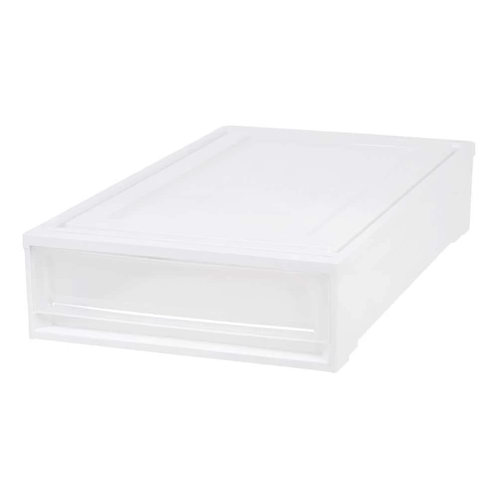 Dominate the storage game with this extra-long stackable drawer unit. Designed to keep going where other storage boxes stop short, its unique length makes use of valuable under-bed space that would otherwise be wasted. Stacks securely with the deep under bed and other under bed storage boxes, so you can fit multiple units together to create customized storage where you need it most. Perfect under beds, in dorm rooms, or any shallow space with a shortage of storage.
