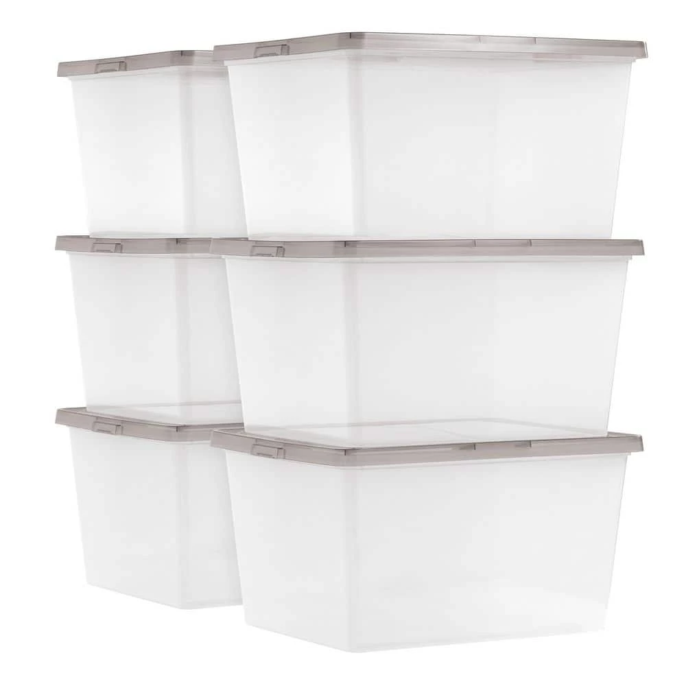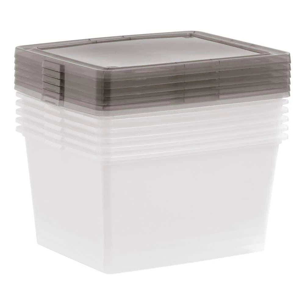 This classic storage box is the perfect size for board games, blankets and other large items. The snap tight lid stores your items securely and the ultra-clear body allows you to see what is stored inside. Stack these boxes together to maximize the use of any storage space. Set of six boxes are stackable to maximize any storage space. Made in USA.
