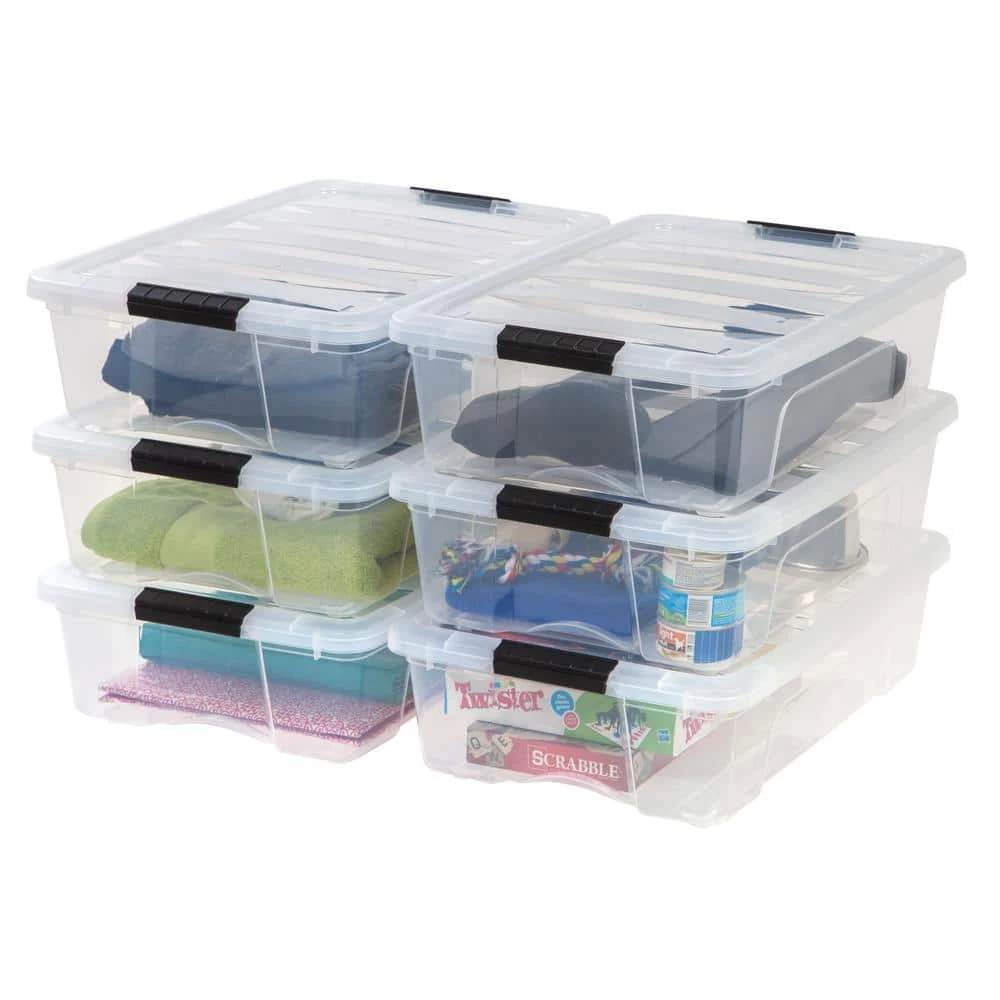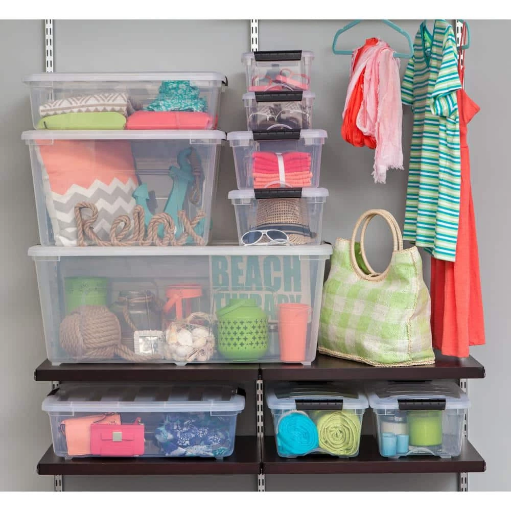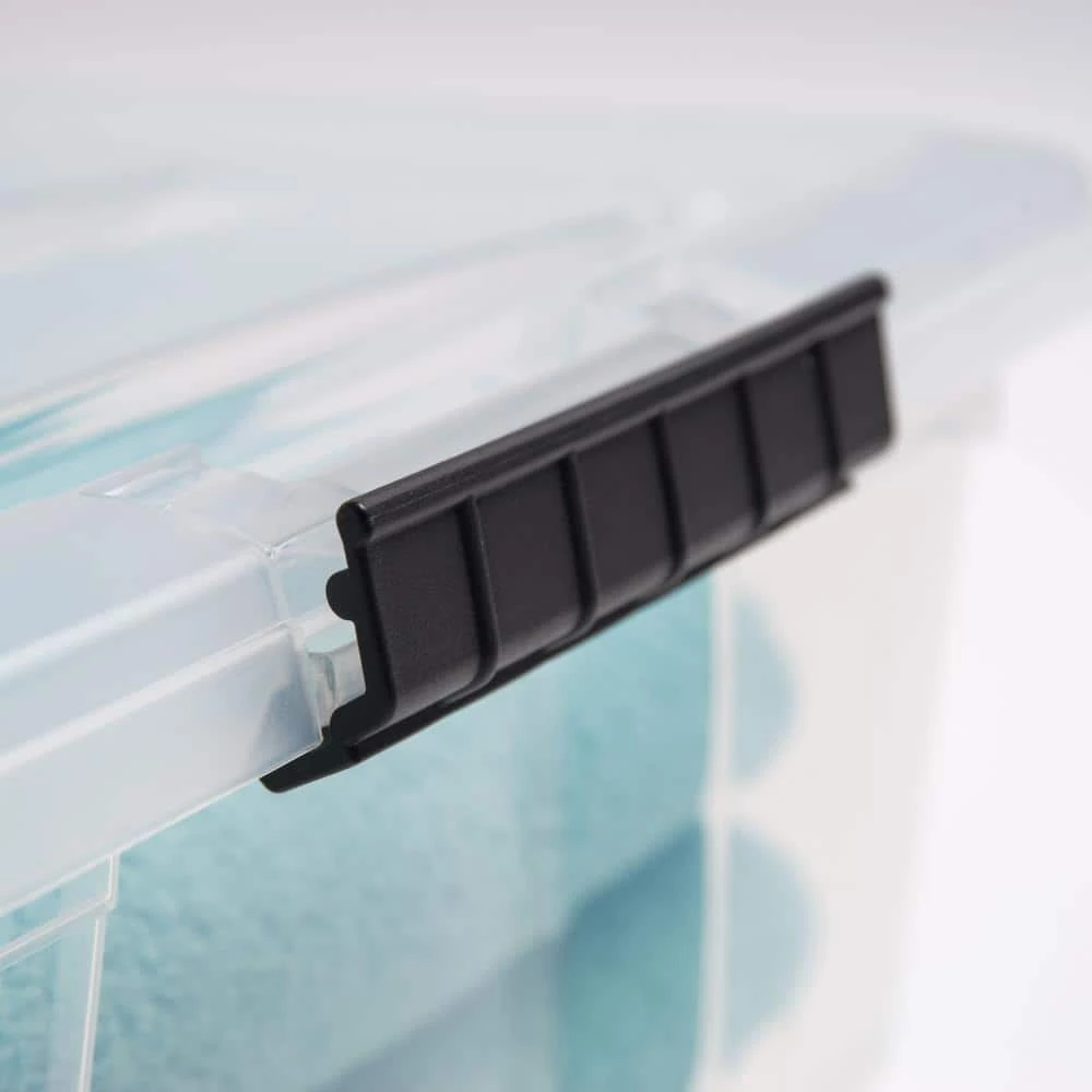The modular storage system built to meet your needs. These 26-Qt. Stack and Pull storage boxes easily store clothes, linens, shoes, and more. Buckle up latches keep the lid securely in place, and the built-in handle makes it easy to pull the box off of a shelf. Stacks neatly with other units in the Stack and Pull series. Available in multiple colors.