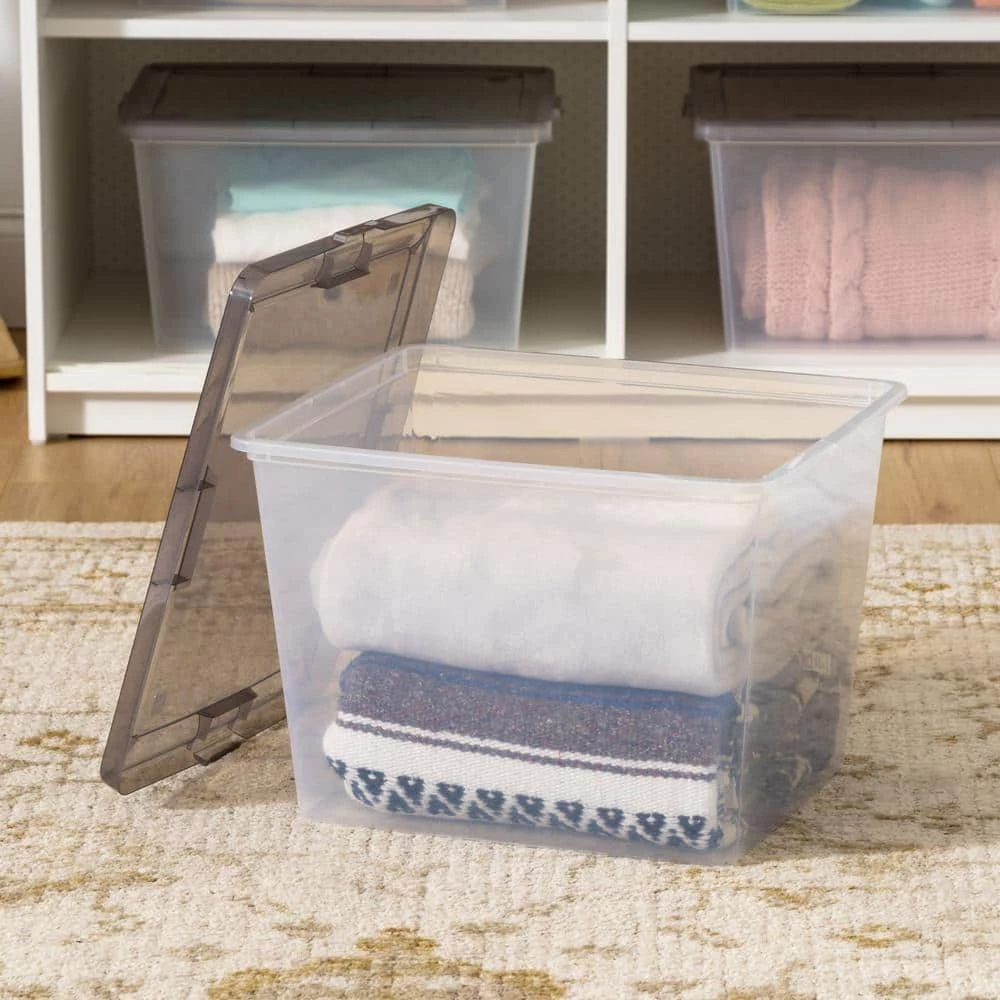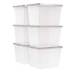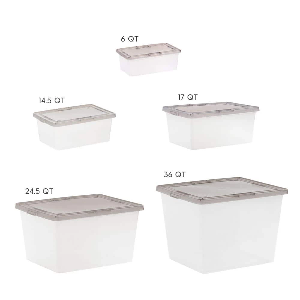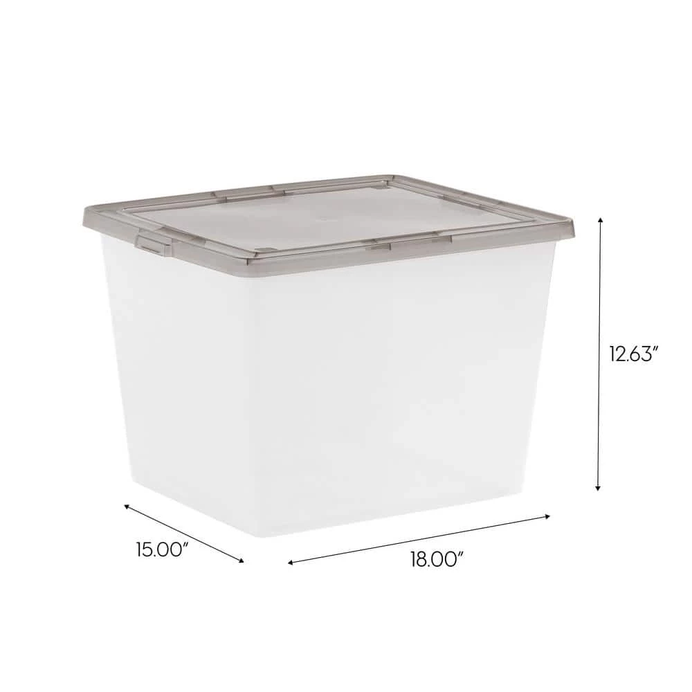 - IRIS USA’s clear plastic latching lidded storage bin tote is a perfect storage organizer that can fit all your items safely with the anti-break, durable polypropylene material