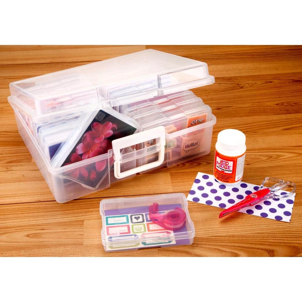 Protect, sort, and store your 4 in. x 6 in. photos with this photo and craft keeper by IRIS USA, Inc. Each keeper holds sixteen 4 in. x 6 in. cases to organize and protect any photos and small craft items including stamps or stickers. The durable and secure handle makes it easy to transport your photos or craft items wherever you go.