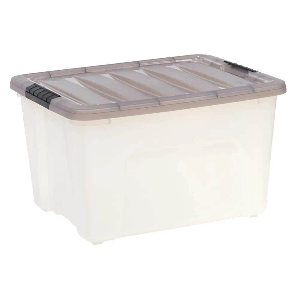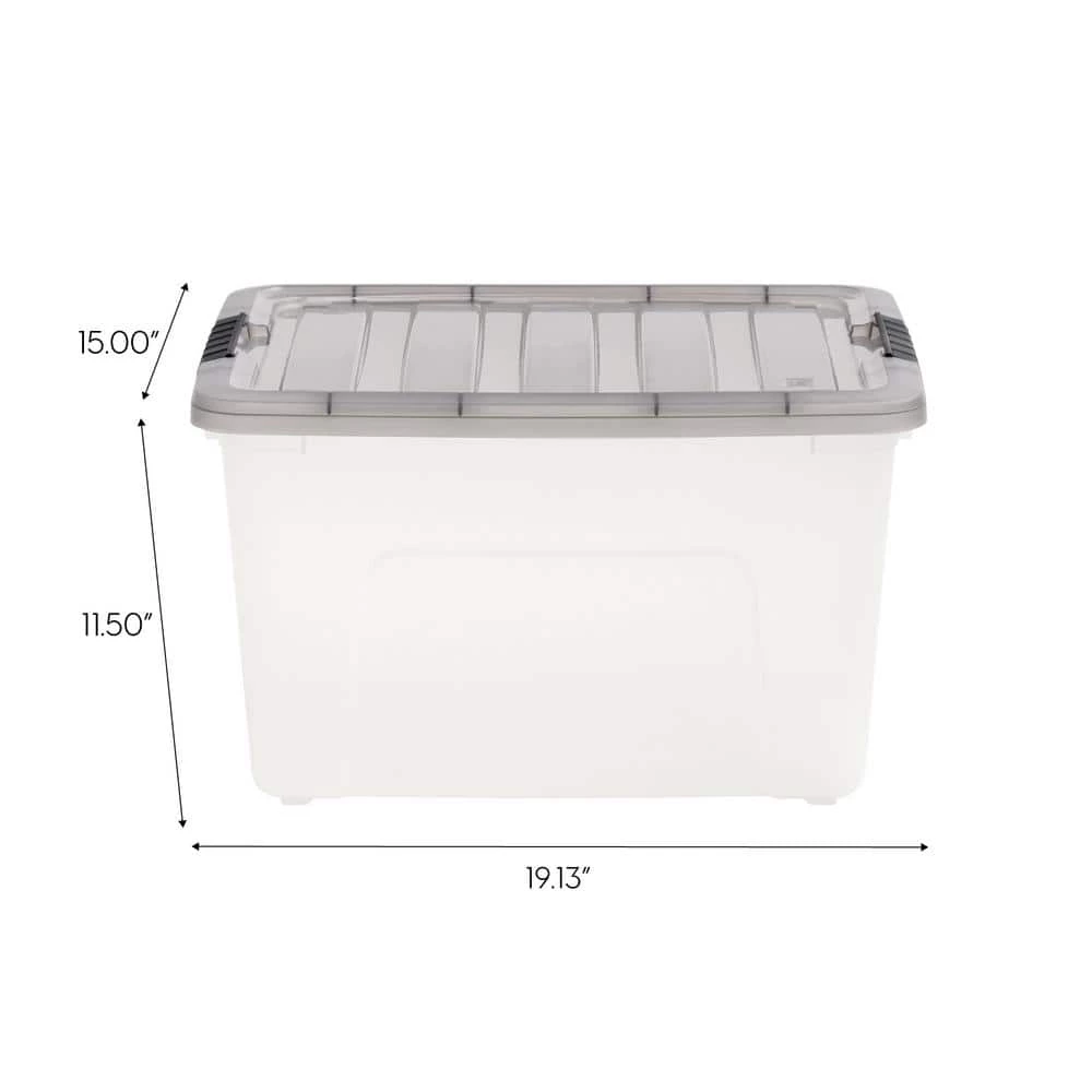 IRIS 40 qt. Stack and Pull storage boxes easily store shoes, craft supplies, office supplies, and more. The modular storage bin system is built to meet your needs. A sturdy locking lid keeps the lid securely in place and the built-in handle makes it easy to pull the plastic bin off a shelf. The storage boxes stack neatly with other units in the Stack and Pull Series; available in 5 qt., 12 qt., 19 qt., 32 qt., 53 qt., 72 qt. Stack and Pull storage boxes.