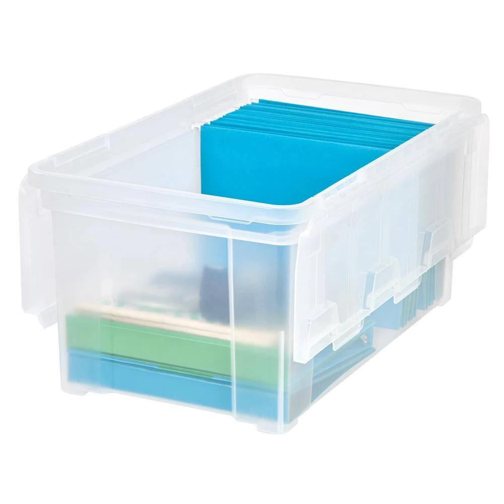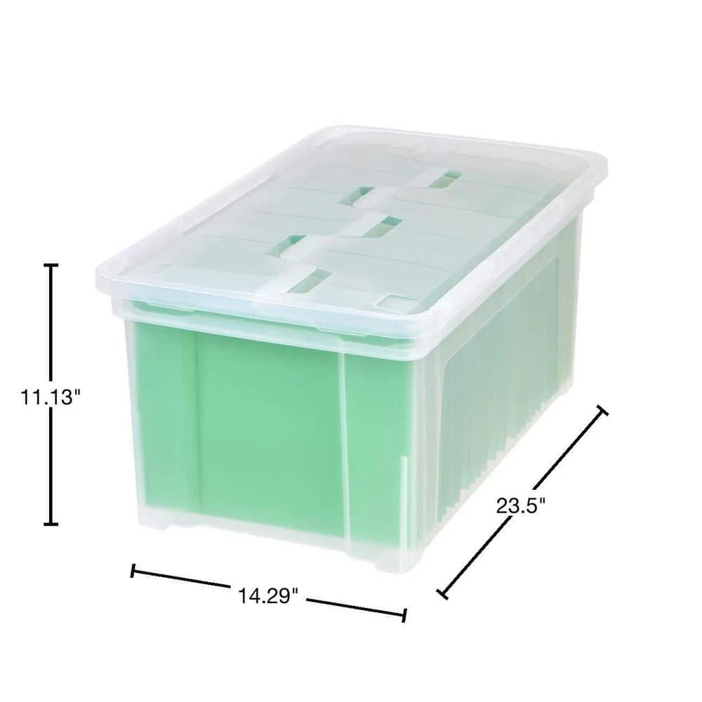 Keep those files and documents protected and easily accessible. This wing-lid file box by IRIS USA, Inc. fits letter sized hanging files, and the lid is reinforced, ensuring it stays attached to the base. Lids are designed for easy stacking, letting you make the most of limited space. Made in the USA.