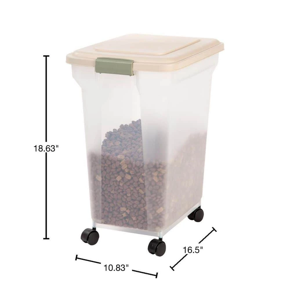 - Pet food bins have airtight seals to keep out moisture and pests for secure dry food storage