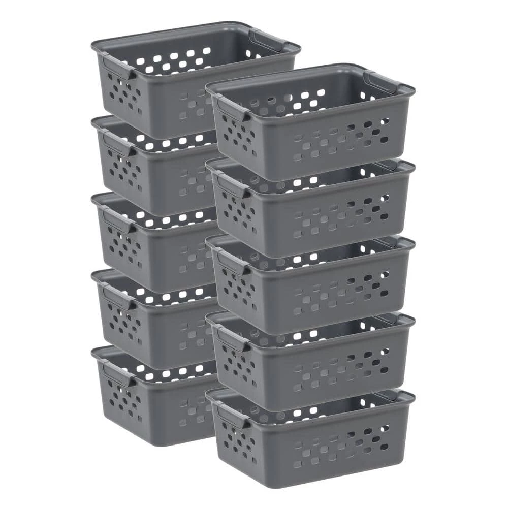 These Small Organizer Storage Baskets combine design and function in one, providing a stylish storage solution for any room in the house. Handles fold up for comfortable, easy transport. Perfect for organizing office supplies, small accessories, cosmetics, charging cables, Kitchen, and more. Set of 10.