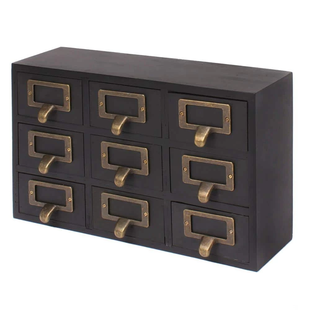- Decorative wood apothecary drawers desk organizer with 9-drawers and rustic finish