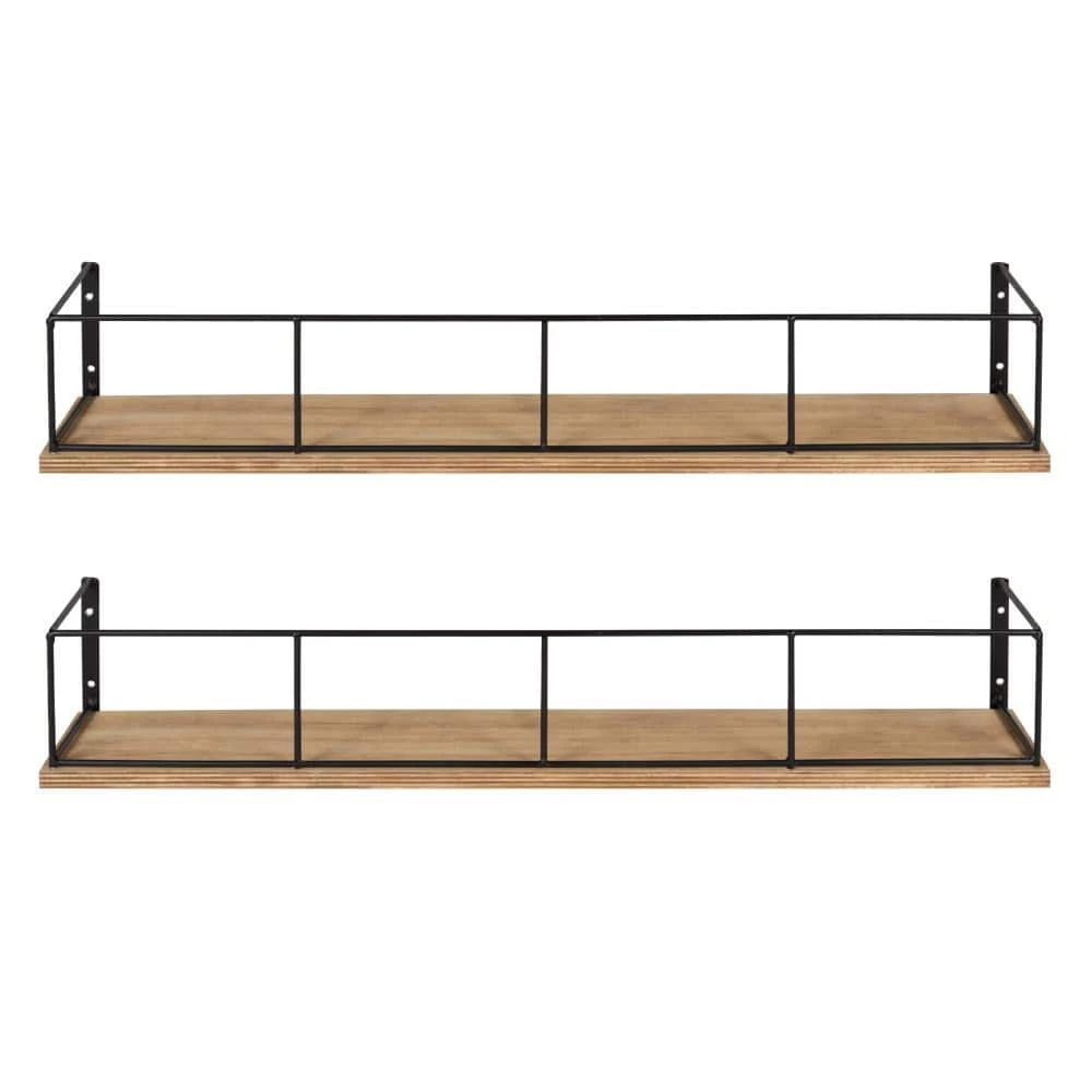 Decorate your home in beautiful modern chic style with these metal and wood shelves. These shelves can organize and display your framed photos, office supplies, or other decorative knickknacks. They are a perfect wall accent for your office or home to display in your kitchen, bathroom, or bedroom. These shelves are constructed of metal and wood. The wall display dimensions are 24 inches wide by 4 inches deep by 4 inches high. The shelves arrive completed assembled ready for use. They have holes drilled in to the metal frame for easy and secure wall display. Decorate and organize in modern design in any room of the home with these lovely accent shelves.