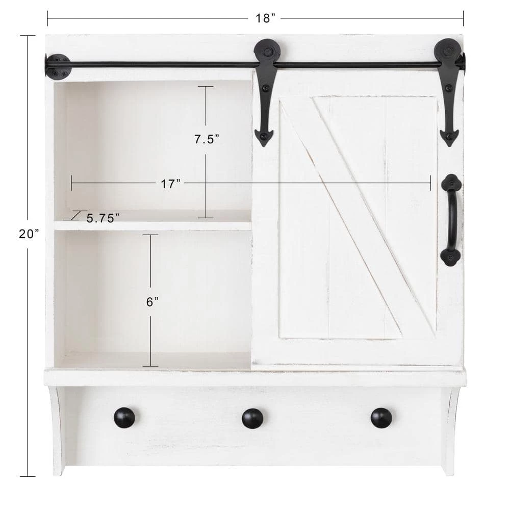 Maintain a clean, organized home with this space-saving, shabby-chic wall organizer from Kate and Laurel. The Cates wall organizer takes inspiration from a rustic farmhouse look, with a barn door-inspired sliding door and colonial hanging knobs. This wall-hanging organizer takes inspiration from traditional vintage craftsmanship, constructed of wood and metal material. It features a compact size that is 20 in. high by 18 in. wide by 7.75 in. deep. The shelves are 17 in. wide by 5.75 in. deep, with 6 in. of space between the lower shelf and 7.5 in. of spaces between the upper shelf. The decorative cabinet is the perfect size for storing mail, clutches, and small plants. With its plentiful storage capabilities, you could even creating a medicine cabinet, jewelry organizer or spice rack. This compact wall organizer looks great in any farmhouse-inspired entryway, bathroom, kitchen, or living room. It also features 3-colonial-inspired hanging knobs for keys, coats, and other items. Mount this cabinet in seconds with its easy-to-use keyhole hangers.