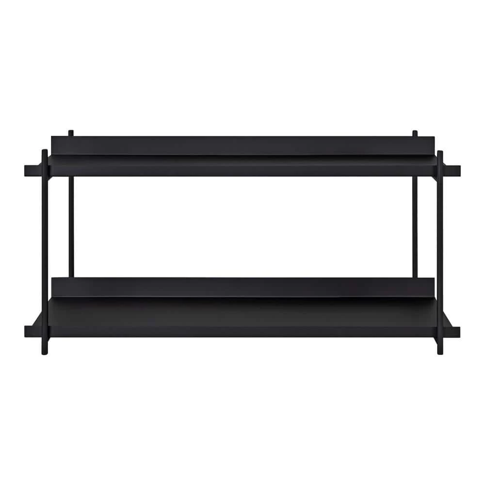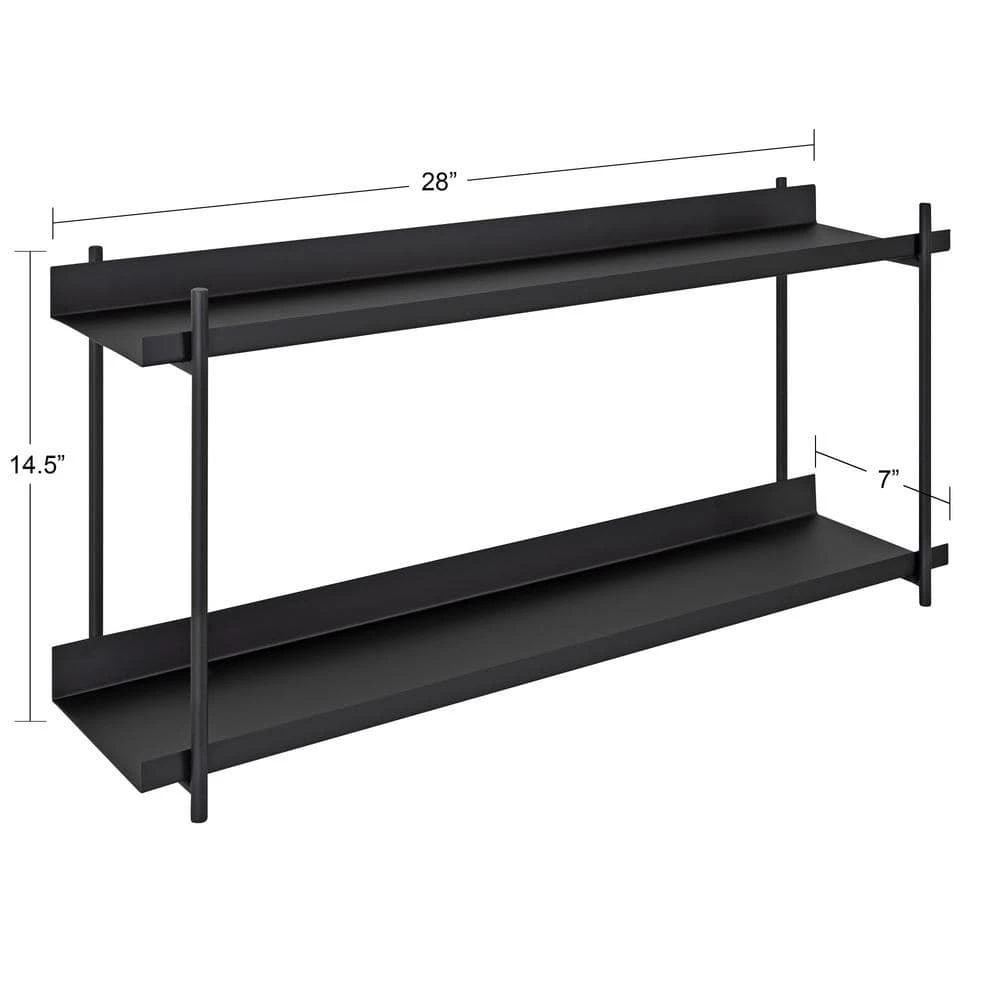The Dominic wall shelf brings subtle minimalism to any wall of your home. Inspired by modern design aesthetics, the Dominic features sleek, uncomplicated lines with a two-tier design. The Dominic was built out of a resilient metal, finished with a black coat to fit into any decor style. The two-tier design gives you plenty of storage capacity for a multitude of functions. The overall dimensions of the Dominic are 28 in. wide x 7 in. deep x 14.5 in. tall. The two tiers are 28 in. by 6 in. with a weight capacity of 5 lbs. each, making them excellent for use as a small bookshelf, a display area for keepsakes, or a fantastic space for awards and photos. The shelf’s raised lip also prevents your precious keepsakes and items from falling off the shelf accidentally! As a minimalist, industrial accent, the Dominic wall shelf looks fantastic in any office, living room, bedroom, entryway, or dining room. Hang this simplistic storage shelf in a matter of seconds with the convenient metal keyhole hangers securely attached to the back of the frame.
