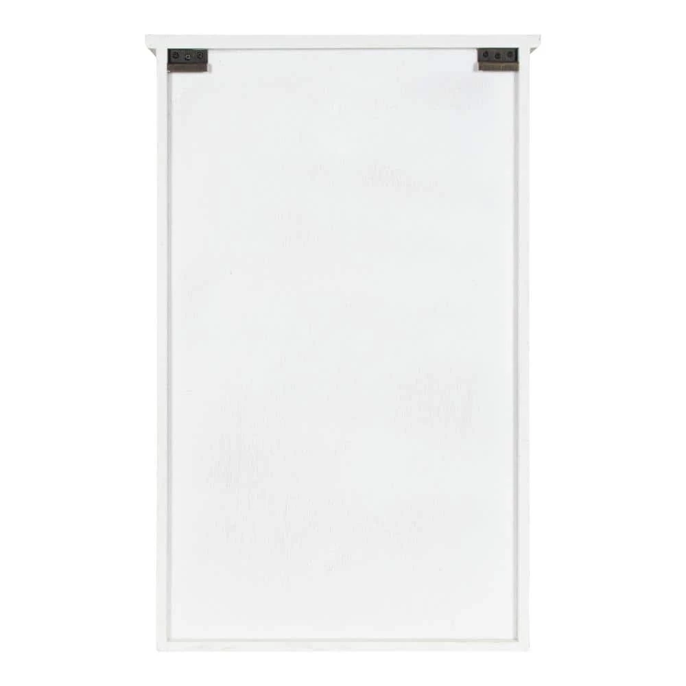 Decorate your home in vintage farmhouse style using this unique hanging wall shelf with a beautiful glass windowpane door. This hanging cabinet will organize spaces if you only have a bit of wall space but still want smart storage and great looks. It’ll work exceptionally well in an entryway, mudroom, kitchen, bathroom, living room, or guest room. It has three inner shelves to store items of different shapes and sizes. The single windowpane door opens with a vintage metal locking handle and shuts securely with a magnetic clasp. The outer dimensions of this wall shelving unit are 31.5- in. tall x 19.5- in. wide x 6- in. deep. Two metal Z-bracket hangers are installed on the back of the cabinet for easy, sturdy wall display. This wall cabinet arrives completely assembled and ready to use.