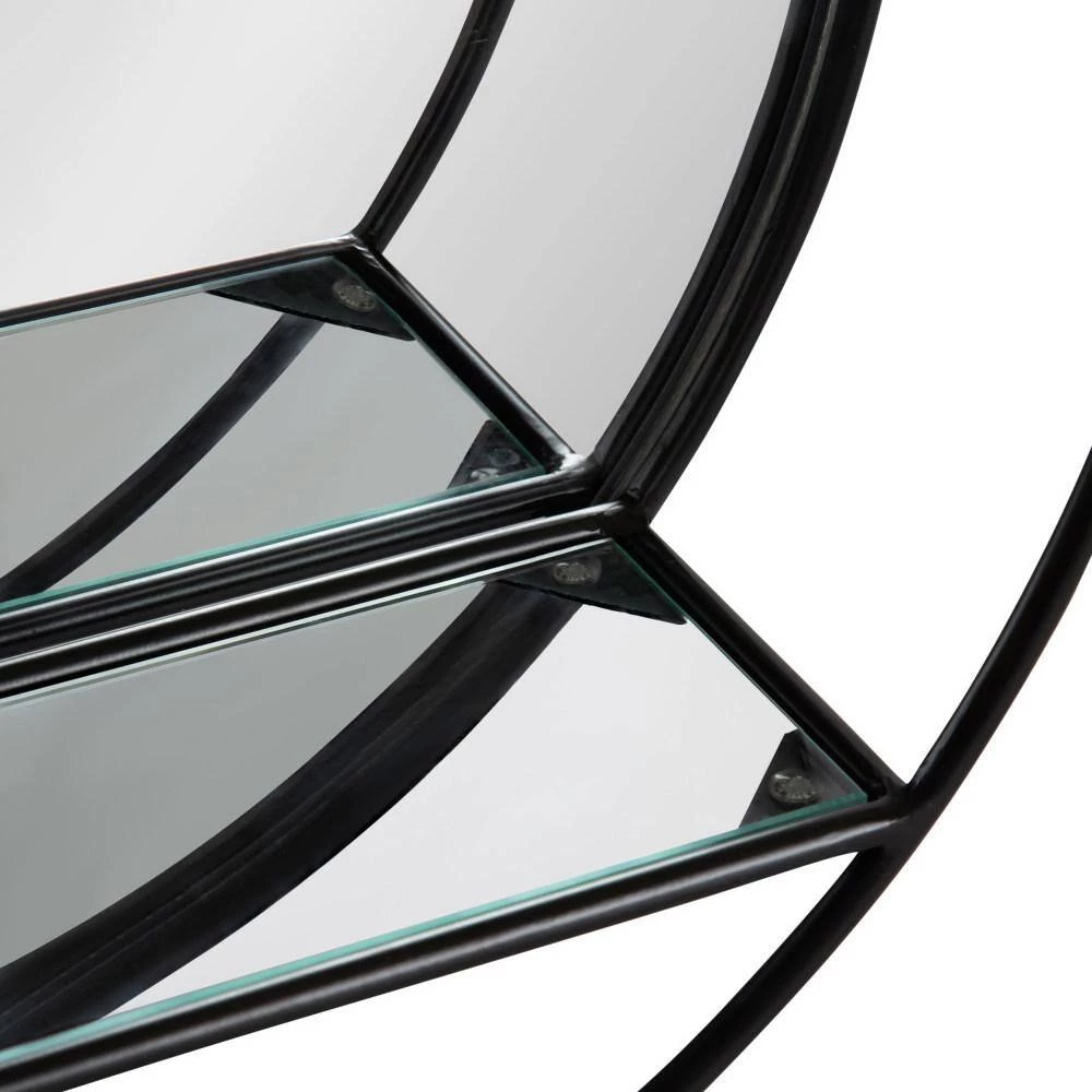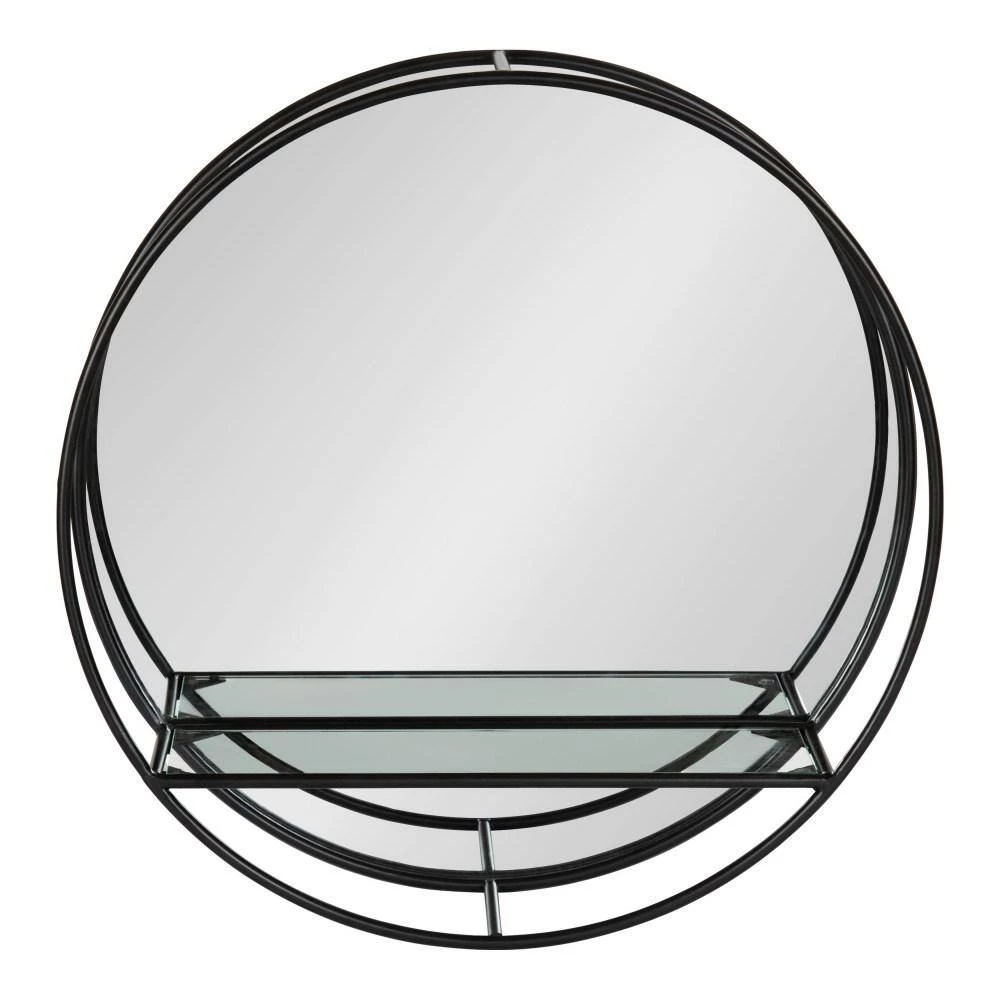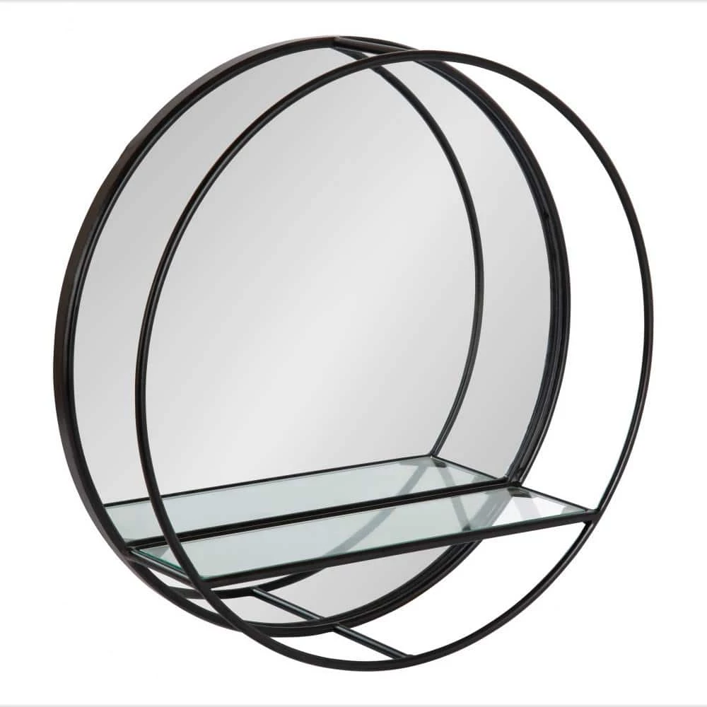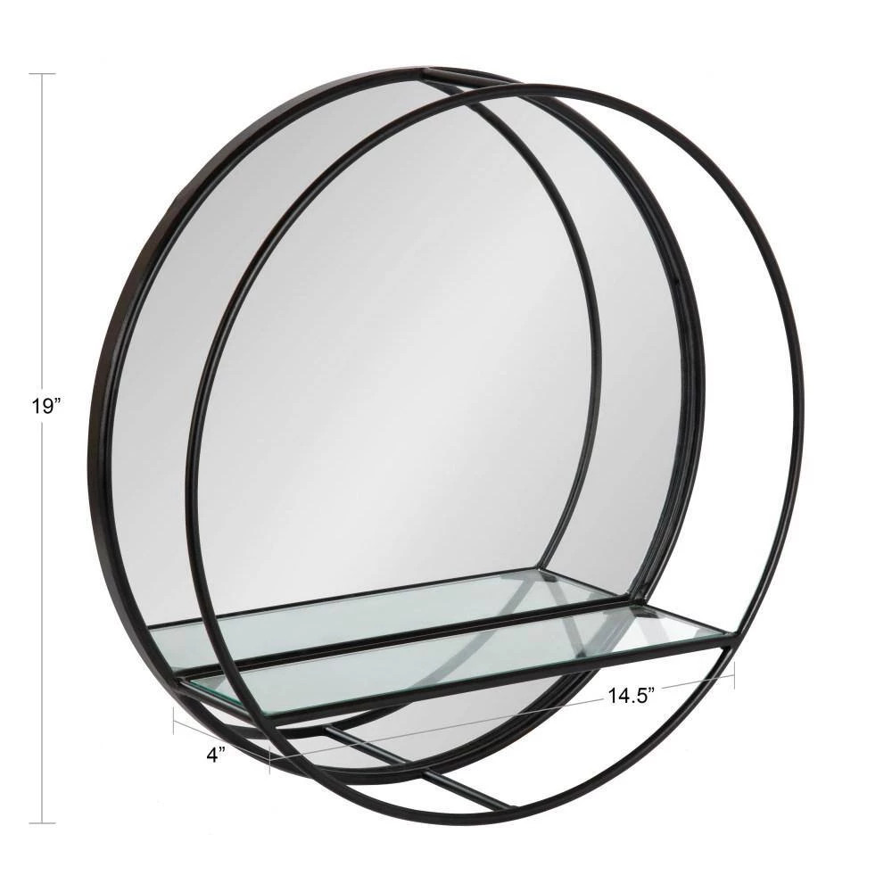 Create a unique wall display and decorate your home with the Kei Modern Round Accent Mirror. Not only is it a much-needed modern accent piece, but with a bit of imagination, this mirrored shelf has the potential to add a real focal point to your home. The Kei Mirror has a high-quality, raw iron metal finish, creating a beautiful industrial statement. It also features a trendy round shape that blends in well with spaces such as your living room, dining room or entryway. The built-in glass shelf is measured with dimensions of 14.5 in. x 4 in., making it the perfect display area for small keepsakes, succulents or photos. Kate and Laurel recommend utilizing this shelf’s compact design by pairing it with other modern decorative items in your home, like a console table or desk. It mounts easily on the wall or above your console table with the keyhole hangers securely attached to the back. We also recommend purchasing this beautiful wall mirror in multiples to create a symmetrical display area or an industrial double vanity.