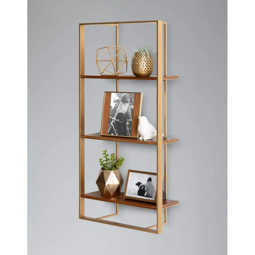 - Simple design: the Kercheval wood shelf takes inspiration from clean, mid-century modern design, with clean lines and a timeless gold metal frame