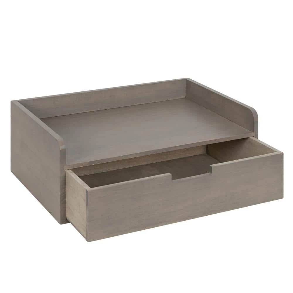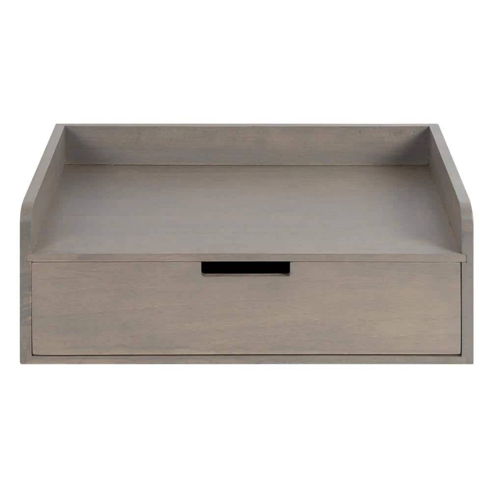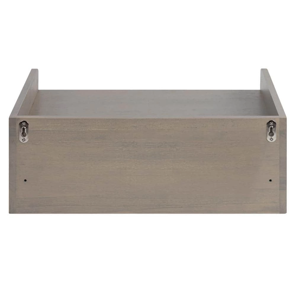 The Kitt floating shelf with a drawer is a cleverly-designed home decor accent piece that utilizes space efficiently. This wall shelf features clean, uncomplicated lines with premium solid wood construction to add robustness that will last for years. The casual, cozy look of this floating wall shelf looks fantastic in any living room, bedroom, entryway, office, classroom, or any other space in your home. This shelf also has a pull-out drawer to store small household necessities, keys, wallets, and more. The overall dimensions of this shelf are 18 in. W x 12 in. D x 7 in. D, while the interior pull-out drawer is 18 in. W x 7 in. D x 4 in. tall. This large space provides you plenty of room to showcase family photos, prized keepsakes, or lovely green succulents. This rectangular shelf also has a 15 lbs. weight capacity, providing you with plenty of opportunities to decorate your space with any of your favorite accents. Hang the sophisticated Kitt floating wall shelf seamlessly with the metal keyhole hangers attached to the back of its wooden frame.