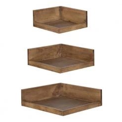 Go above and beyond your standard decor and shelving needs with the Levie Corner Shelf. It’s a great way to add decorative pieces to your home in a nontraditional way, anchored to the corner of your walls instead of in the middle. Displaying potted plants or vases, memorable family photos or other small items has never been easier with the Levie shelves’ graduated sizes. The smallest shelf stands at 8 in. Long x 8 in. Wide, while the middle shelf is 10 in. Wide x 10 in. Long. Finally, the third, largest shelf stands at 12 in. Wide x 12 in. Long. The Levie shelves are shipped fully assembled, with no complicated instructions or small pieces to find. This set is also made with a solid poplar wood construction and a natural, rustic finish for a look fit for a modern farmhouse. Display these shelves separately throughout your home or together in one room for one united decor aesthetic. Each shelf only requires a couple of small screws to insert within the pre-drilled holes, making hanging a mere 10-second chore. If you love the look of our Levie Corner Shelves, look at some of Kate and Laurel’s other products within the Levie collection.