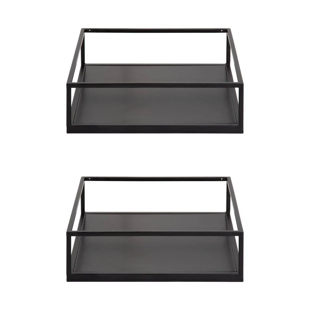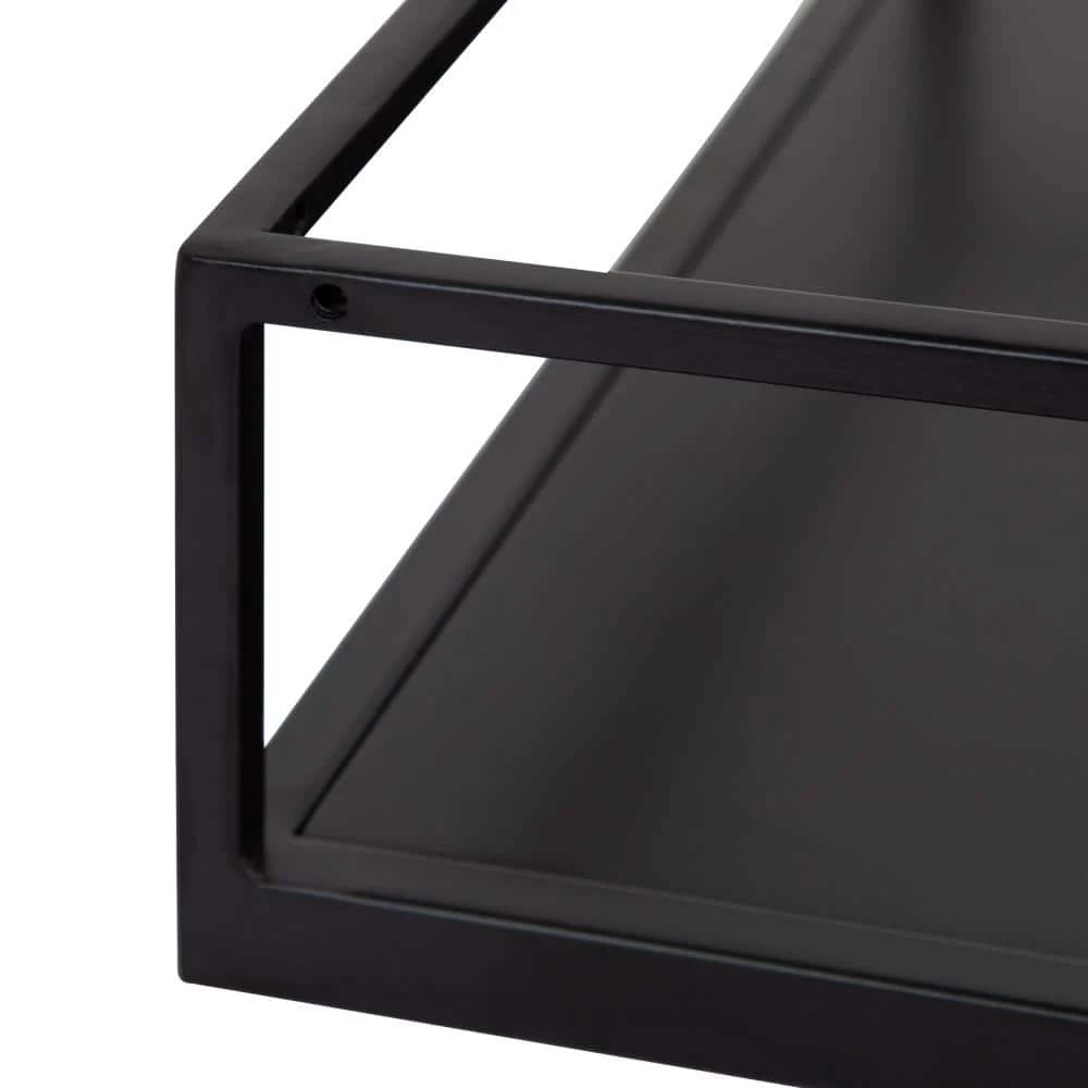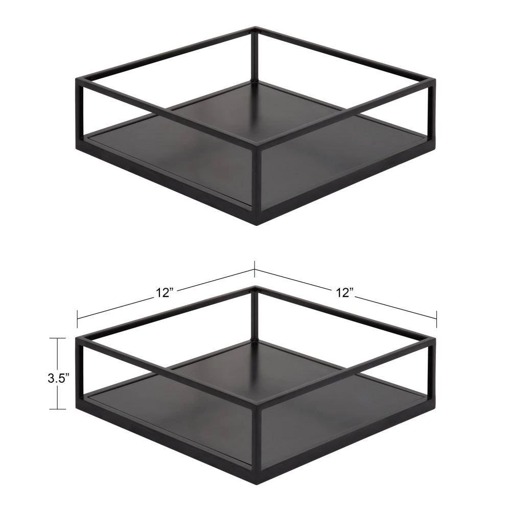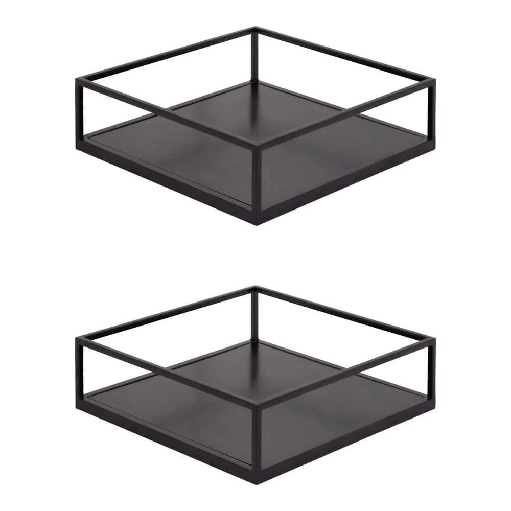 Add a space to display your favorite small plants, frames and keepsakes with the Lintz corner shelf set. This shelf set brings modern simplicity to your home with its sleek black metal frame, with clean, geometric lines and unique compact design. Each corner shelf in this set is 12 in. Wide x 12 in. Deep, with a 3.5 in. H. The size of this small shelf allows you to store and display your smaller items with ease, showcasing your own personal taste in decorative items. Mount these contemporary modern designs together in one room or throughout your home for a cohesive decor theme. The Lintz shelf set would look excellent in any modern living room, bedroom, entryway, dining room, kitchen or home office. They also save time with pre-drilled holes and included hardware for easy installation in a matter of seconds. There are no complicated instructions to follow, no assembly required or dozens of pieces to keep track of. With a simplistic design and a simple installation, this shelf set is an excellent way to put effort into your home without putting much effort in at all.