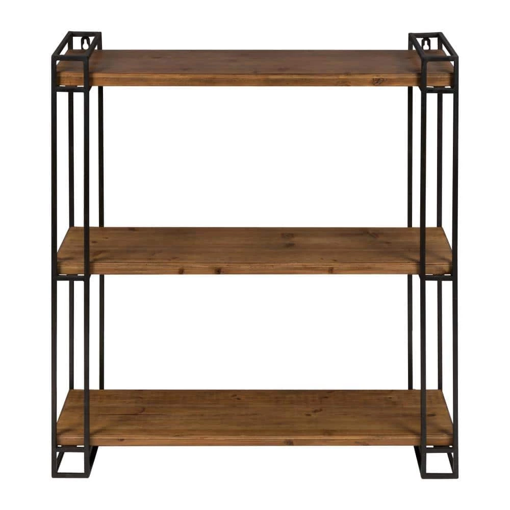 Rustic farmhouse design meets functionality with this floating wall shelving. Constructed of black metal frame with three solid wood shelves, this floating shelving can be used to display your books, photo frames, or knickknacks in your living room or home office. Each shelf measures 26 inches wide by 7 inches deep and there is 12 inches of vertical space between each shelf. The display dimensions of the floating shelves are 26 inches wide by 7.25 inches deep by 30.5 inches high. This decorative wall shelving is versatile, functional, and will be a beautiful accent in any room of the home.