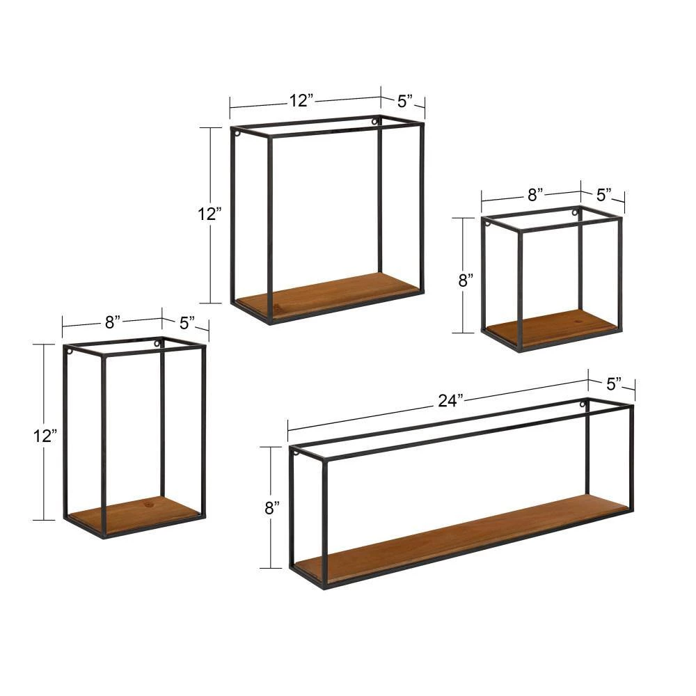 Bring your farmhouse decor into the 21st century with this industrial, minimalist set of wall shelves designed by Kate and Laurel. This set features an industrial look, with a chic, black-finished metal frame and a rustic wood base. The Mallory Shelves features a variety of sizes to display as a collection or spread throughout your home. These modestly-sized shelves are an excellent way to store and display small plants, photos and keepsakes in your living room entryway, bedroom or dining room. Or if you want a unique storage opportunity in your master bathroom or powder room, install them next to your sink and store lotions, soaps and more. You could even use them as handy kitchen decor, creating an avant-garde spice cabinet or pantry. With a variety of sizes and plenty of functional use, there’s no limit to what you can do with these shelves. Mount them on your wall in a matter of seconds with the easy-to-use eyelet hangers discreetly attached to the back of each shelf.