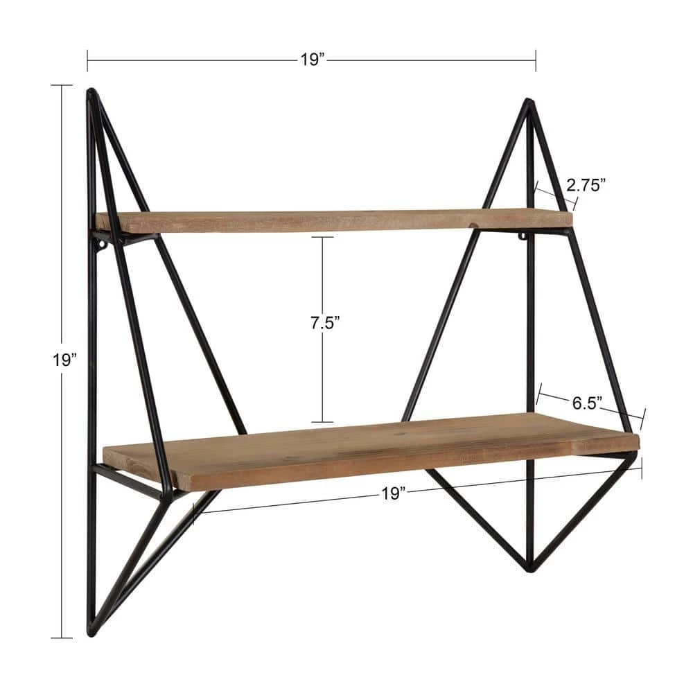 - 2-tiered decorative floating wall shelf oozes sophistication the overall dimensions are 19 in. Tall x 19.5 in. Wide the classic design holds the 2-solid wood shelf boards for a chic, classic look