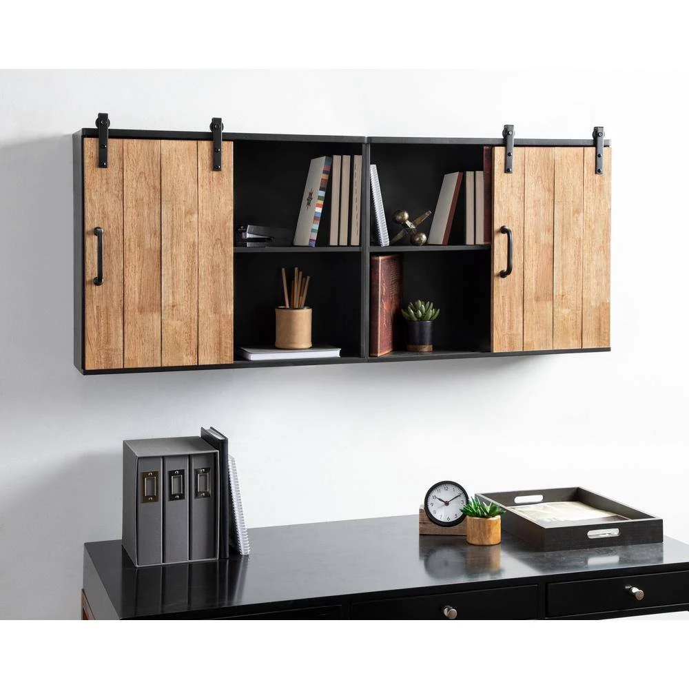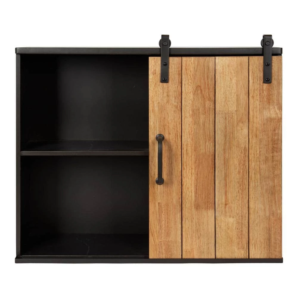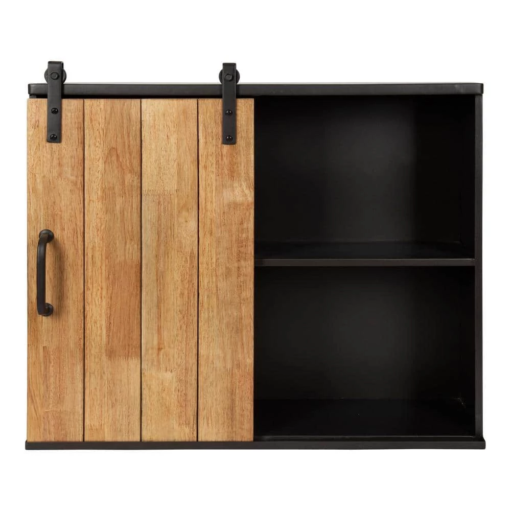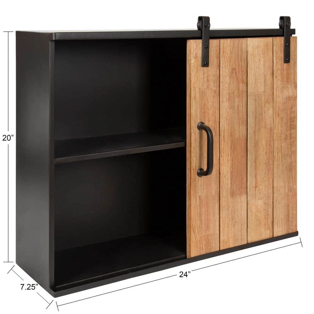 Accentuate your modern taste with a robust cabinet for storage and display. The Samuels 1-Door cabinet offers a premium design made with high-quality, resilient materials. The inner chamber of the Samuels cabinet is a rich, sturdy metal, with a charcoal finish that blends into any industrial or rustic decor aesthetic. The door on this industrial cabinet has a solid wood construction in a joined slat design, providing your home with a modern take on reclaimed shiplap. The Samuels Cabinet’s door hangs from a sliding mechanism, taking inspiration from the industrial look of barn doors. Within the cabinet, you’ll find a sturdy, metal shelf that is 24 in. wide by 6 in. deep. The overall dimensions of this elevated industrial piece are 24 in. wide by 7.25 in. deep and 20 in. high. This provides you with plenty of room to store spices, bathroom necessities, succulents, or small decorative accents. The robust, industrial look and high quality of this cabinet make it a dynamic, chic accent for any modern living room, bedroom, entryway, bathroom, or kitchen. Hang this sturdy wall cabinet in a matter of seconds with the stable metal Z-brackets attached to the back of the metal frame.