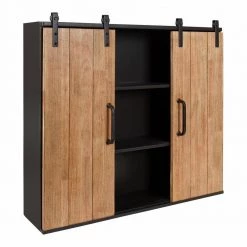 - Quality materials: this cabinet features a metal base with a charcoal finish and 2-solid wood barn doors with a rustic brown finish