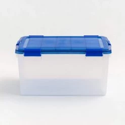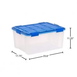 15 Gal. Lockable Plastic Storage Tote in Clear with Sturdy Blue Lid and Buckles (4-Pack) by IRIS