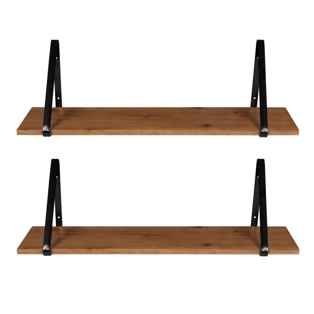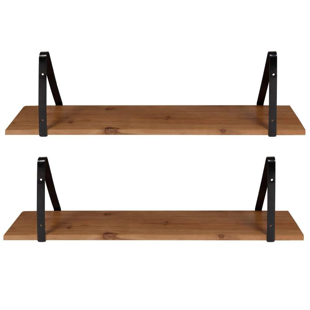 Organize your home with minimalist refinement and sophistication by featuring the Soloman shelves on any wall. These warm open-concept shelves feature a base made from a blend of wooden material cradled within two iron brackets for secure mounting. Each tier also has a rustic brown finish on the base with a sleek black finish on each of the metal brackets, giving the Soloman collection a transitional look. The overall dimensions of each shelf are 27.5 inches wide by 6.5 inches deep by 8.25 inches tall, making them perfect for storage and display. The identical nature of this set makes it ideal for displaying the two shelves on their own or together in a side-by-side or vertical orientation. The styling options for the Solomans are endless: use them to create a coffee bar or open-concept pantry, a toiletry shelf, an accent display, or even a mini bookcase. Whether you mount them in your bathroom, kitchen, living room, or kitchen, you won’t have to worry about complicated assembly thanks to the quick process and pre-drilled bracket holes that make installation a cinch.