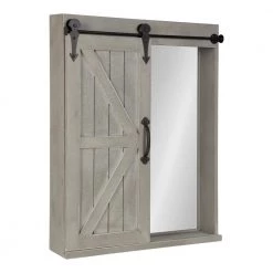 Cates 6 in. x 22 in. x 28 in. Gray Wood Decorative Cabinet Wall Shelf with Mirror by Kate and Laurel