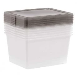 20 Qt Stack and Pull Box, 8 pack Clear with Black Handles by IRIS