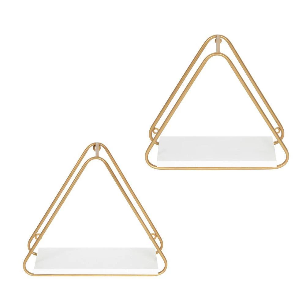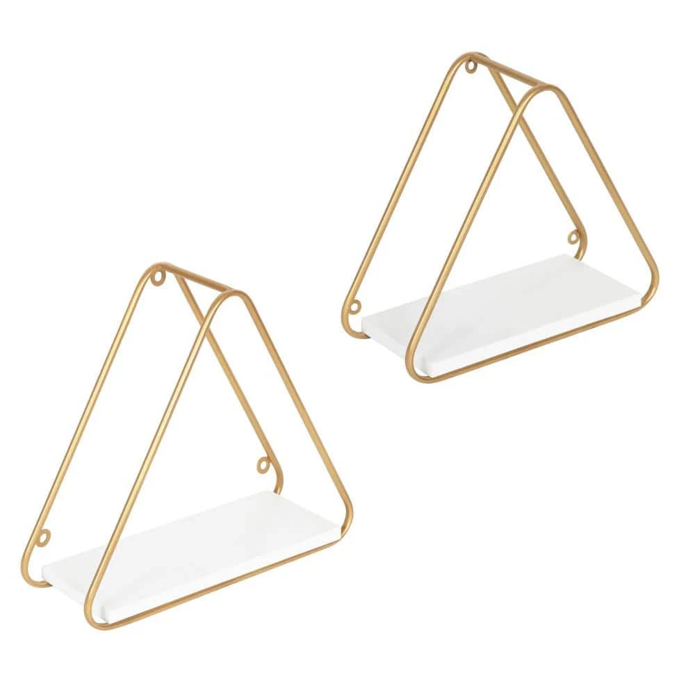 - Triangle wall shelf: the tilde shelf set has a trendy geometric shape with a mid-century glam metallic gold finish