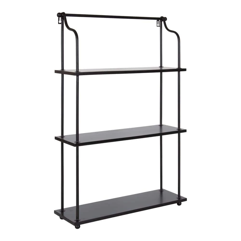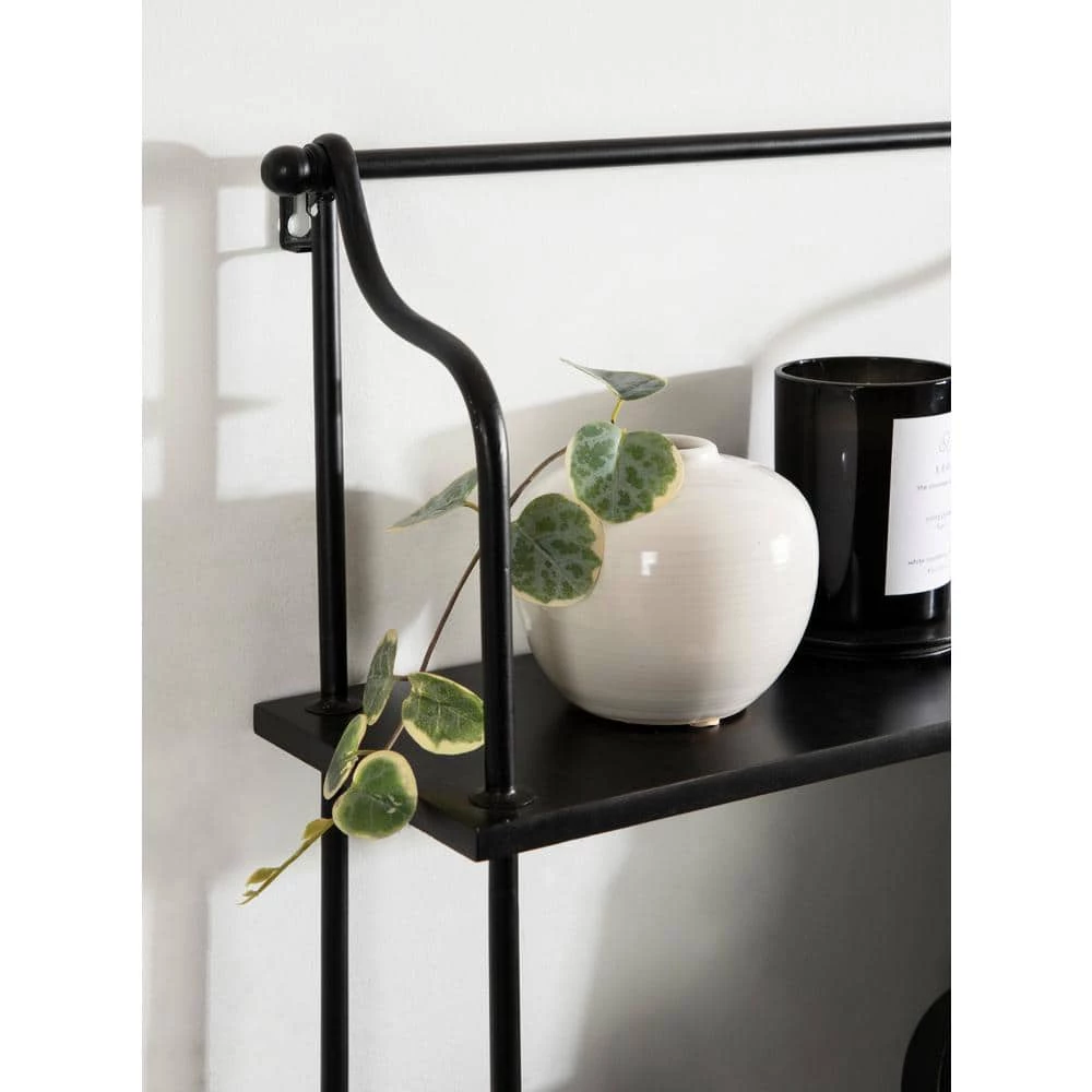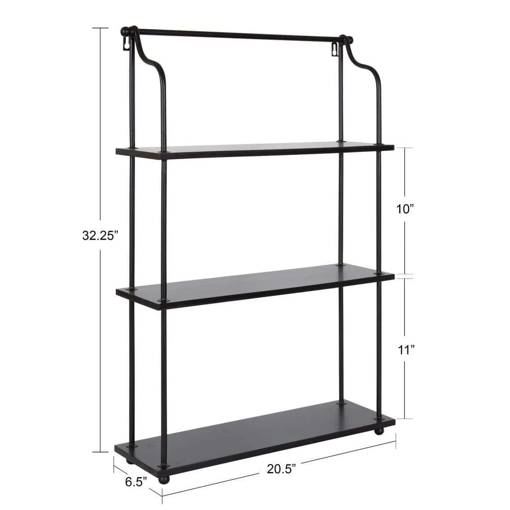 Looking for efficient storage with a sophisticated modern style. The Walters shelf has you covered. Inspired by minimal design with modern functionality, the Walters has a hanging design with 3-individual tiers of shelves. Crafted from a rich blend of wooden and metal materials, the Walters allows for a robust storage area that doesn’t take up too much space, separating your items away from your countertop or tables. The sleek black finish on the Walters shelves also provides a modern look that blends into various decor spaces and color stories. The overall dimensions of this shelf are 32 in. tall by 6.25 in. deep by 20 in. wide. Each tier’s 6.25 in. shelf depth and allows you to have plenty of opportunities for storage and display. Use the Walters shelf in your bathroom, living room, kitchen, or bedroom to create beautiful and modern wall storage. It’s perfect for showcasing keepsakes and succulents, storing soaps and lotions, or acting as a catch-all for household items. Assemble and hang this shelf in a matter of minutes with the easy assembly process and keyhole hangers.