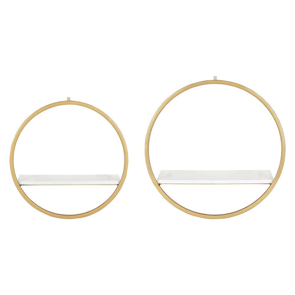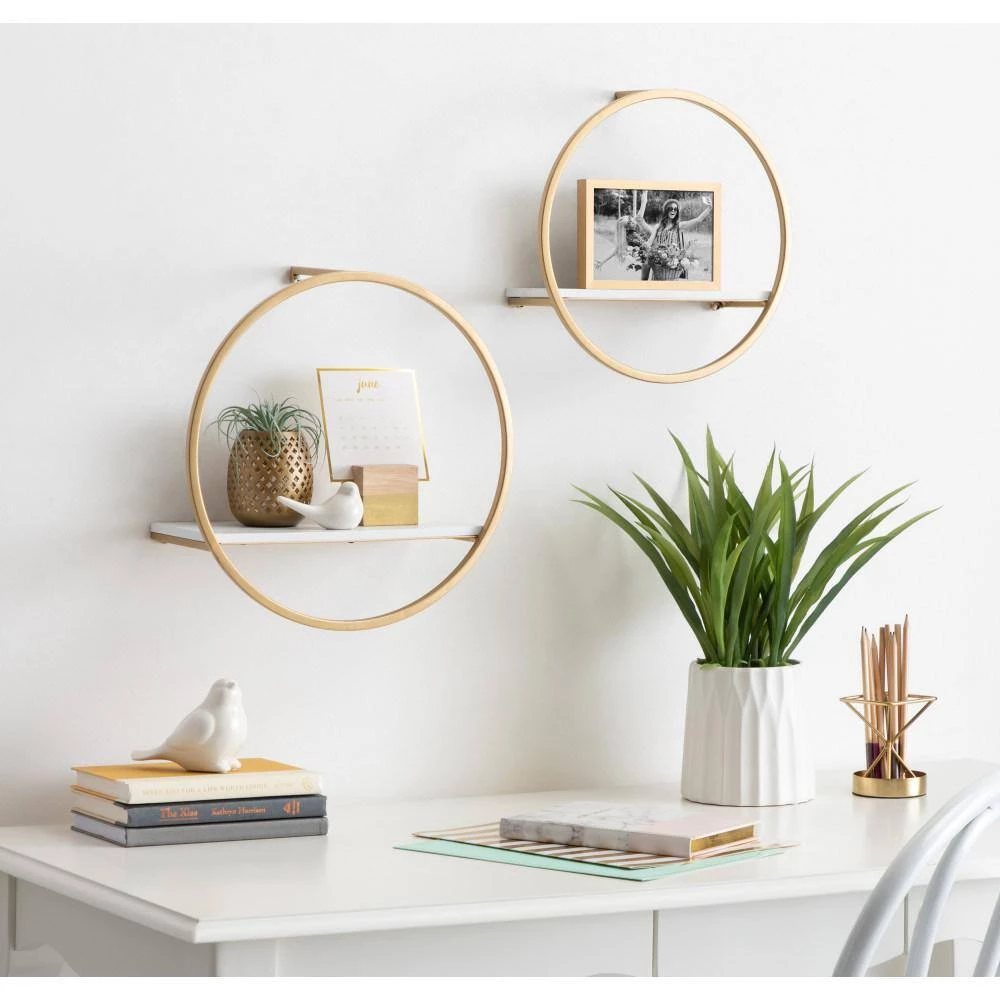 The modern design of the Wicks wall shelves will organize your home while adding a lovely upscale glam style to your interior. The solid wood shelf boards are deep enough to display your books, photo frames or decorations in your living room or home office. The larger shelf is 11.25 in. Wide x 6 in. Deep and the smaller shelf is 10.25 in. Wide x 4 in. Deep. It’s decorative shelving that’s versatile, functional and will be a beautiful accent in any room of your home.